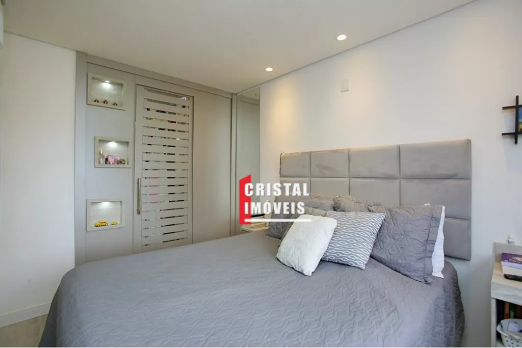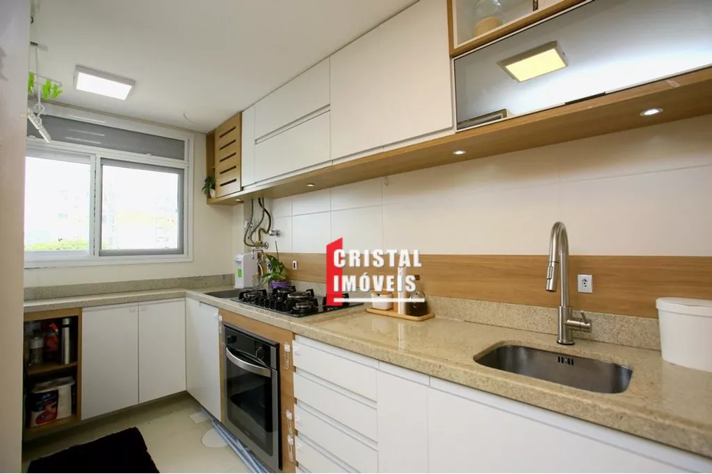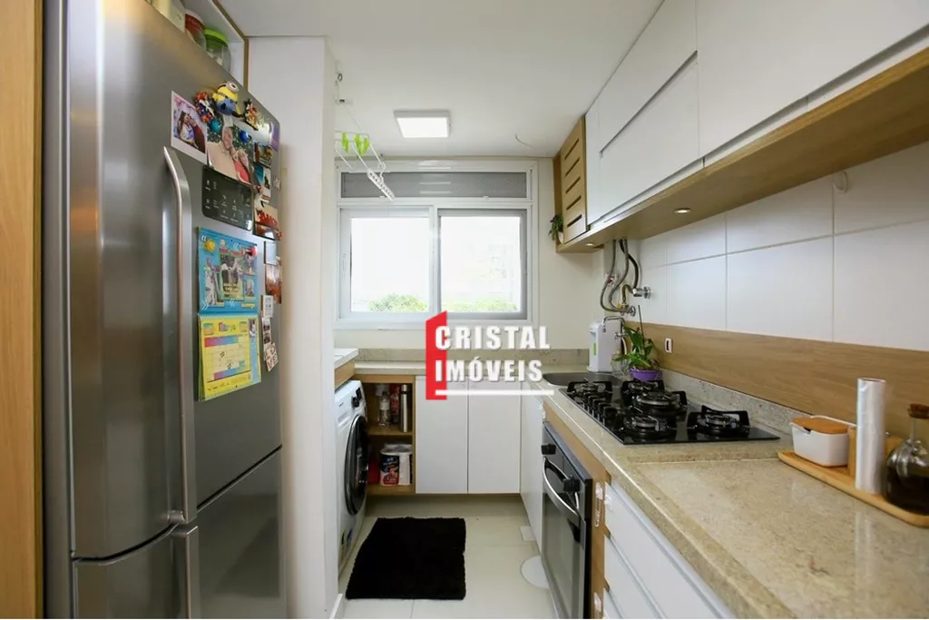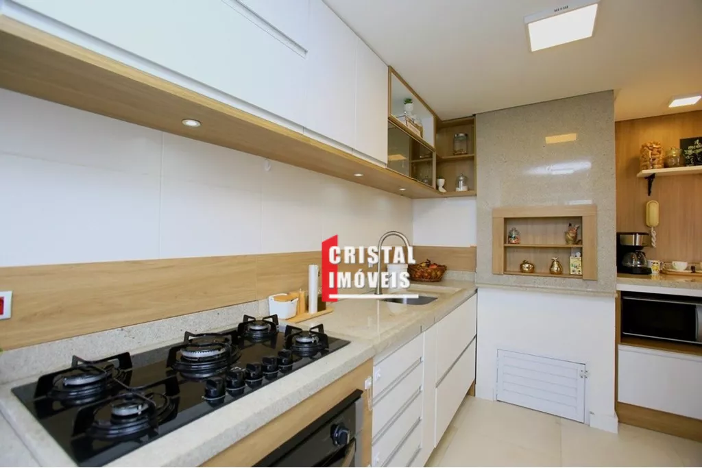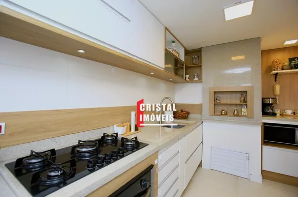 Cozinha americana com bancada em granito, churrasqueira também em granito e água quente na cozinha e banheiros; 2 dormitórios com suíte walking closet.