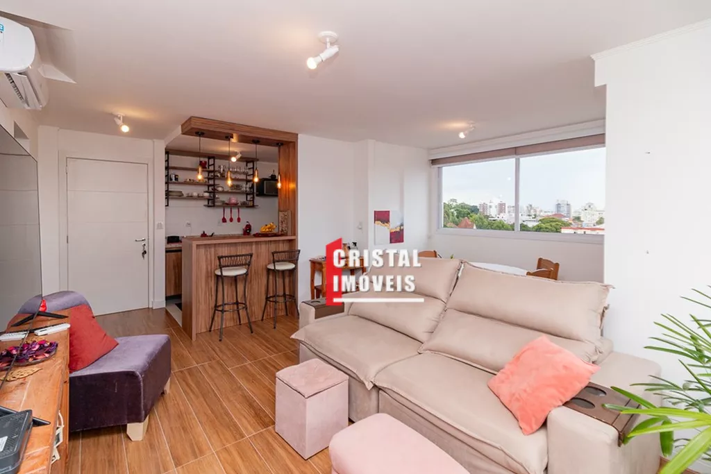 Apartamento de 71 m² muito bem distribuídos, com 2 dormitórios, sendo 1 suíte, banheiro social e um living amplo com churrasqueira integrado à cozinha americana, perfeito para receber amigos e aproveitar bons momentos. A vista é um dos grandes destaques do imóvel, proporcionando uma experiência única com o nascer e o pôr do sol iluminando o ambiente ao longo do dia.