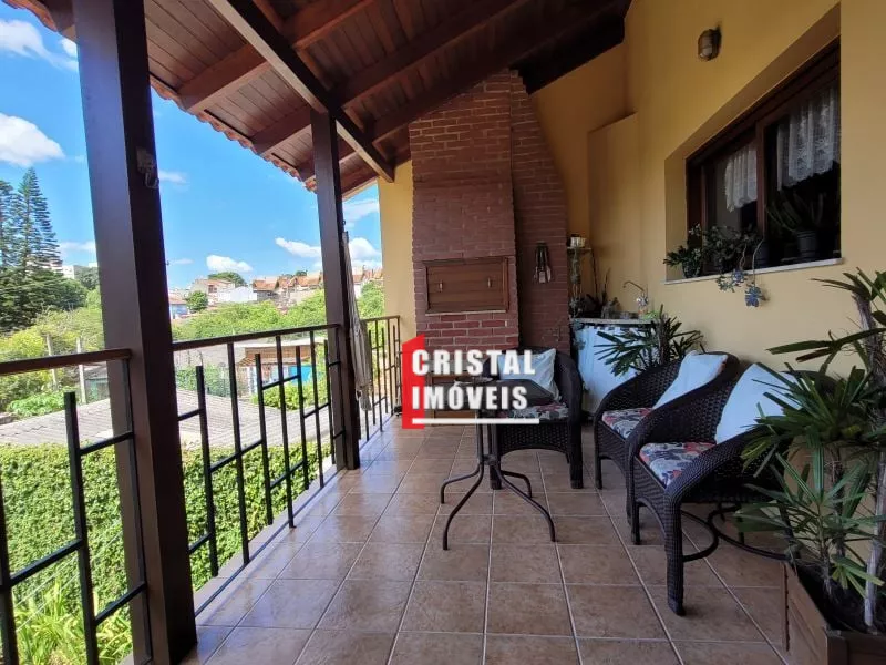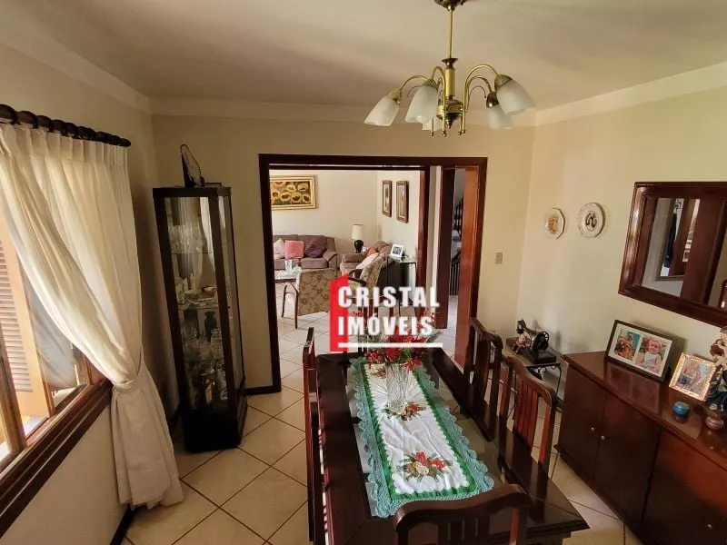 Casa estilo " tradicional", sólida, construída p/ morar e ter muita história, como disse o proprietário estão " vivendo a síndrome do ninho vazio"" são 287 metros construídos, distribuídos em: Sala de estar c/ lareira/jantar, sala de tv ou escritório, varanda, copa/ cozinha com armários, sacadão c/ churrasqueira e linda vista, piso superior com 3 dormitórios, hall, sacada e vista, espaço de churrasco rústico, com mesas e cadeiras, que integram com o amplo pátio, lavanderia, depósito, adega, oficina, garagem ampla fechada, acessos independentes, casa construída p/morar, toda em laje, piso frio, aberturas em madeira, louro - freijó, ambientes amplos e aconchegantes, próximo a todos recursos do bairro, comércio e serviço.