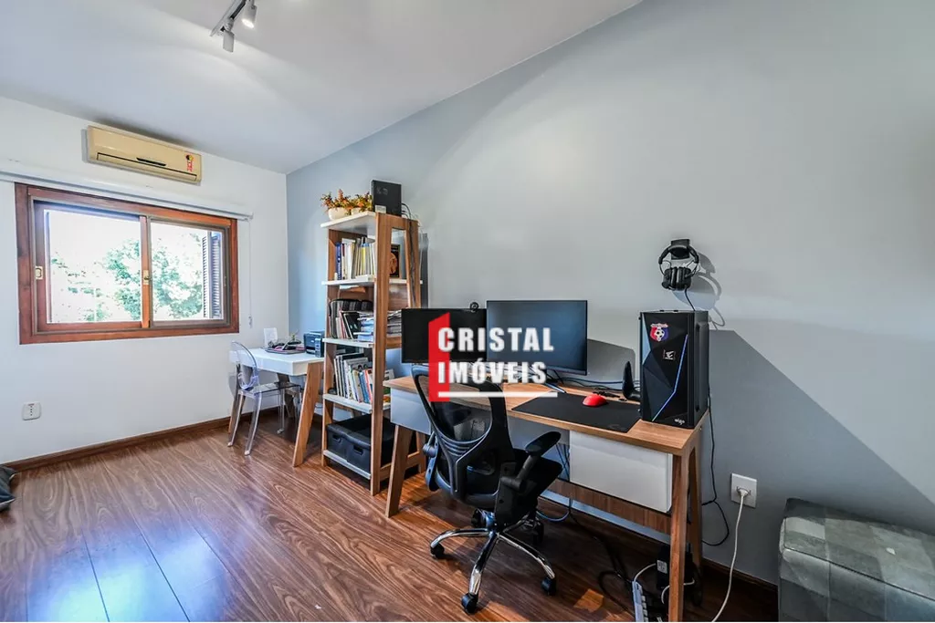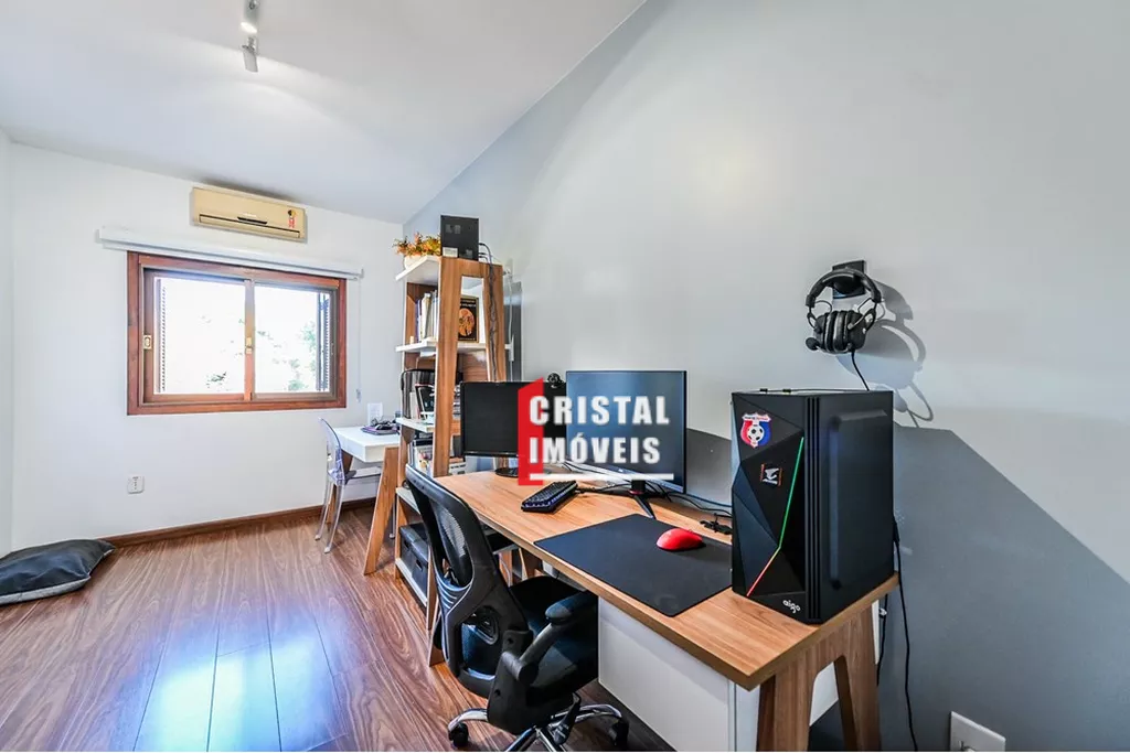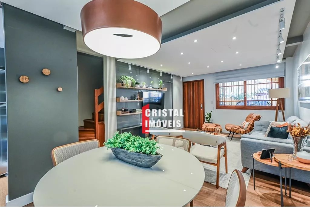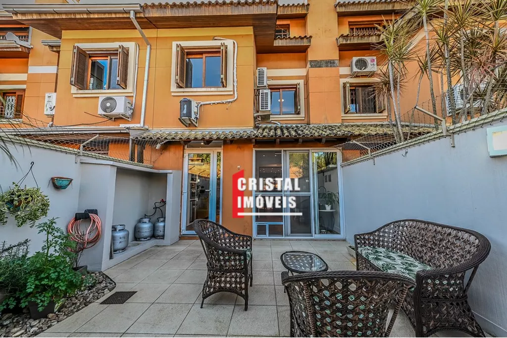 Casa em condomínio à venda no bairro Tristeza em Porto Alegre, localizada na Rua General Rondon, com 154,09m2 de área construída em três andares. O imóvel, construído em 2006 e em excelente estado, possui 3 dormitórios, sendo a suíte principal com closet e jacuzzi, além de 3 banheiros e 1 lavabo. Conta com duas vagas de garagem, cozinha gourmet em conceito aberto integrada à sala de jantar e estar, espaço gourmet com churrasqueira, quintal com jardim, ar-condicionado, chuveiro a gás e armários embutidos. No terceiro piso há lavanderia equipada, sala de TV ou espaço para estudos/home office e terraço ensolarado. O condomínio fechado, com apenas 13 casas, oferece segurança, privacidade, armário inteligente, portaria virtual e baixo custo condominial. Aceita animais de estimação. Localização privilegiada, próxima a escolas, igrejas, lojas, hospitais, parques e transporte público. Uma excelente oportunidade para quem busca conforto, praticidade e qualidade de vida em uma das regiões mais valorizadas de Porto Alegre. Preço e disponibilidade do imóvel sujeitos a alteração sem aviso prévio.