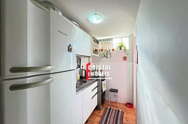 Apartamento 1 dormitório, estacionamento, Condomínio Cristal da Lagoa, no bairro Cristal. Apartamento grande, 39m², 4 º andar, frente rua, elevador, com piso parquet, cozinha com área de serviço separada, Ótima posição solar. Condomínio tem elevador, portaria 24h, quadra esportes, salão de festas com churrasqueira, bicicletário, vaga rotativa, com bastante vagas, academia ao ar livre e muito espaço com bancos a sombra. São duas portarias para acesso, tanto pela R Chico Pedro ou Av Cel Massot. O Imóvel está quitado. Aceita financiamento, FGTS e consorcio. Preço e disponibilidade do imóvel sujeitos a alteração sem aviso prévio.