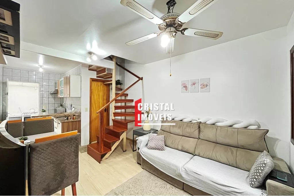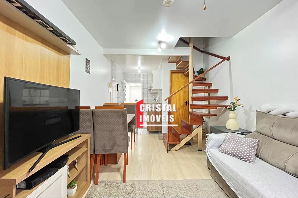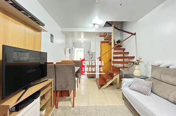 Casa em condomínio fechado na Vila Nova, estilo sobrado, com 2 dormitórios + sótão (opção de 3º dormitório) e vaga coberta. Living para 2 ambientes, cozinha em conceito aberto e área de serviço coberta. No 2º piso, dois dormitórios de bom tamanho; no 3º piso, sótão amplo atualmente dividido em dois ambientes (pode ser 3º dormitório, estar íntimo ou sala de TV).