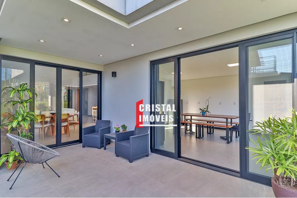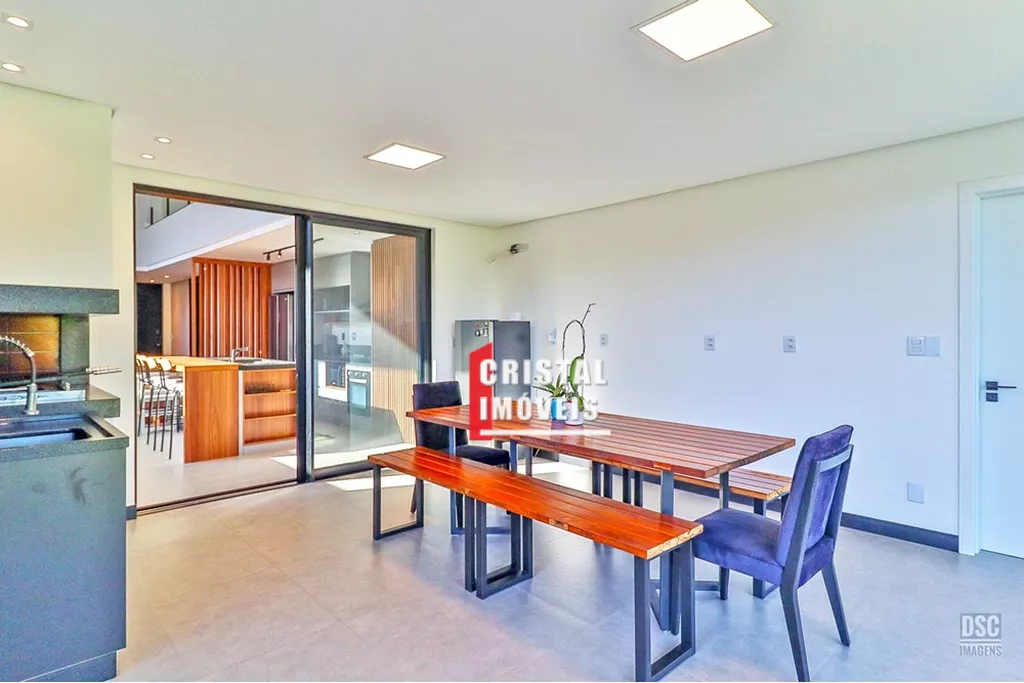 Uma residência de prestígio, que combina design contemporâneo, tecnologia e uma infraestrutura de lazer inigualável, está disponível no cobiçado condomínio Alphaville Vêneto. Este imóvel de 346m² é a tradução perfeita de conforto e exclusividade para quem busca uma qualidade de vida superior. Projetada para atender às mais altas expectativas, a casa oferece uma planta inteligente e versátil. O segundo pavimento é dedicado à área íntima, com quatro suítes que garantem privacidade e conforto a toda a família, sem contar na sacada com vista exclusiva do pôr-do-sol no Guaíba . No térreo, um dormitório adicional, que pode ser elegantemente convertido em um home office, adapta-se perfeitamente às novas dinâmicas de trabalho e vida. O coração da casa é o seu amplo espaço gourmet, um convite permanente à celebração e ao convívio. Integrado à sala de estar e jantar com pé direito duplo, o ambiente se destaca pela sofisticação e pela fluidez, ideal para receber amigos e familiares em grande estilo.