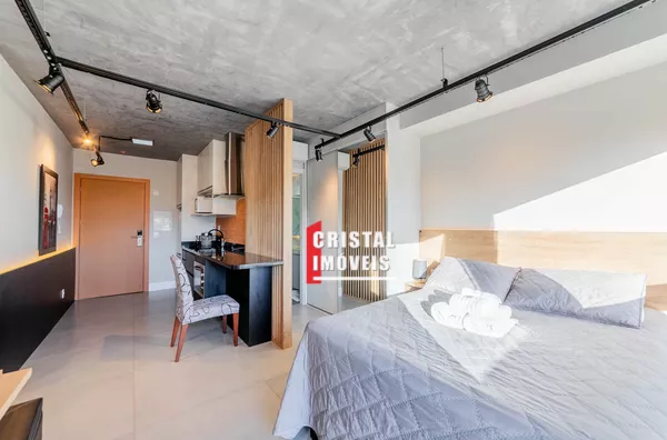 Apartamento compacto totalmente decorado e mobiliado em andar alto e ótima posição solar, com 28,41m² de área privativa. Ambientes de living, dormitório e cozinha integrados e com esquadrias do teto ao chão, e banheiro social. Pronto para morar, com o kit mais top e completo de mobília, eletros, cortinas e iluminação. O empreendimento possui serviços de hotelaria, garagem, storage room, fire pit, lounge, infraestrutura de lazer completa no rooftop com piscina, gourmet fechado e aberto, fitness e espaço sky. Realmente diferenciado, com amplos espaços multiuso de convivência que facilitam a vida do morador! Preço e disponibilidade do imóvel sujeitos a alteração sem aviso prévio.