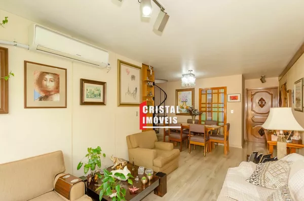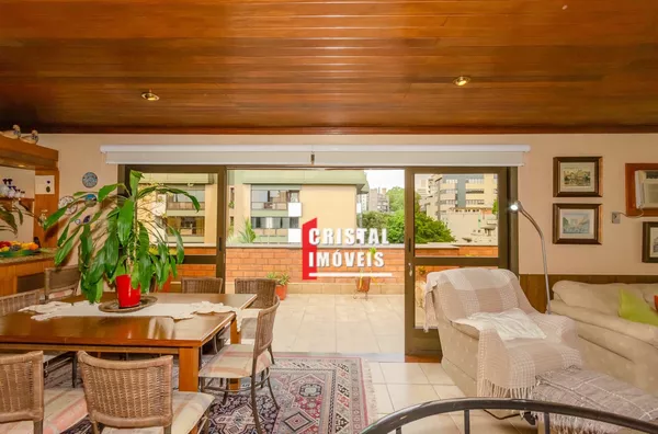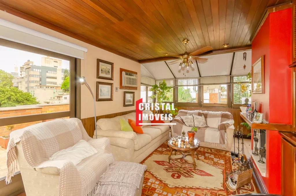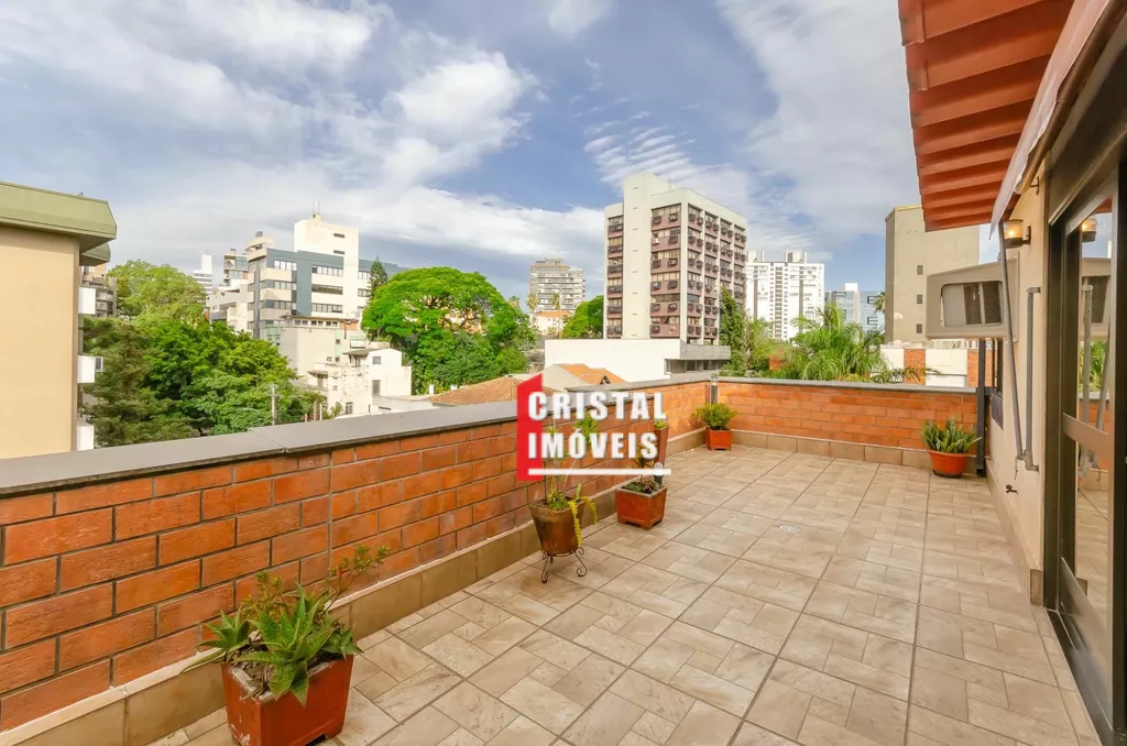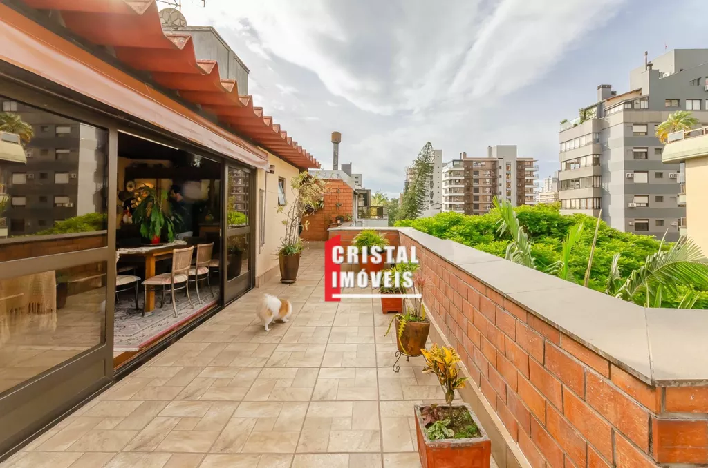 Cobertura com 199,63 m2 no bairro Petrópolis em Porto Alegre, ensolarada e com vista verde permanente, próxima à Praça da Encol. No primeiro pavimento possui três dormitórios sendo uma suíte, living para dois ambientes, copa e cozinha, banheiro social, área de serviço separada e dependência completa com banheiro auxiliar, duas vagas de garagem individuais e cobertas. No pavimento superior conta com amplo living para três ambientes com churrasqueira gourmet, depósito, área de serviço fechada e terraço ensolarado com vista para a cidade. O edifício de esquina em rua arborizada possui elevador, salão de festas com churrasqueira, espaço fitness, interfone, cerca elétrica e portão eletrônico. Localização privilegiada próxima à Praça da Encol e ao Grêmio Náutico União na Nilo Peçanha, em uma das ruas mais desejadas do bairro Petrópolis. Preço e disponibilidade do imóvel sujeitos a alteração sem aviso prévio.