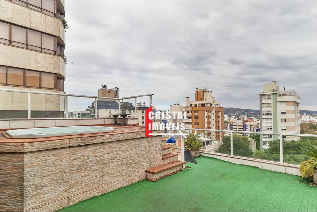 Cobertura com cara de casa em bairro nobre de Porto Alegre, em edifício pequeno com apenas 3 moradores, elevador, gás central e vídeo porteiro controlado pela TV ou celular. O imóvel oferece muito espaço social com living em tabuão com lareira e varanda, cozinha ampla com mesa de refeições, lavanderia e dependência completa, além de 4 dormitórios amplos, incluindo suíte com closet e espaçoso quarto de banho. A escada em madeira nobre de dois lances é um destaque arquitetônico e de design. A parte superior lembra uma casa da Serra, com detalhes em madeira de lei, 2 terraços sendo um frontal com jacuzzi e outro maior com lavanderia e banheiro de apoio, além de salão de festas com vários layouts, bar em madeira com cozinha americana, churrasqueira com acabamento exclusivo, lareira e mais um ambiente que pode ser utilizado como 5º dormitório, escritório, academia ou atelier. Conta ainda com garagem para 2 veículos grandes, depósito e acessibilidade para cadeirante. O condomínio fechado garante segurança e privacidade, com câmeras de vigilância e interfone. Localização privilegiada próxima ao Grêmio Náutico União, Zaffari da Carazinho, academias, armazéns, padarias, pet shops e avenidas Carlos Gomes e Protásio, reunindo praticidade, exclusividade e bem-estar em um imóvel único. Preço e disponibilidade do imóvel sujeitos a alteração sem aviso prévio.
